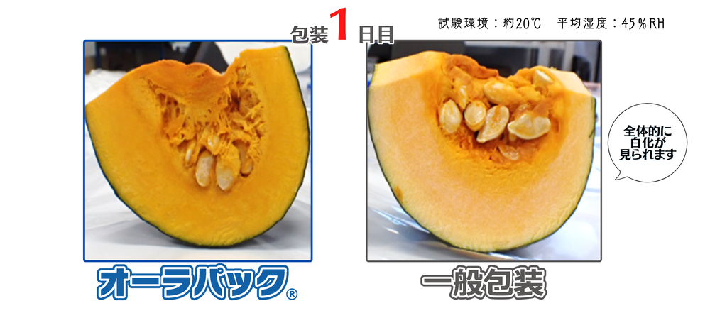 オーラパックラップはカットかぼちゃの白化を抑制します。