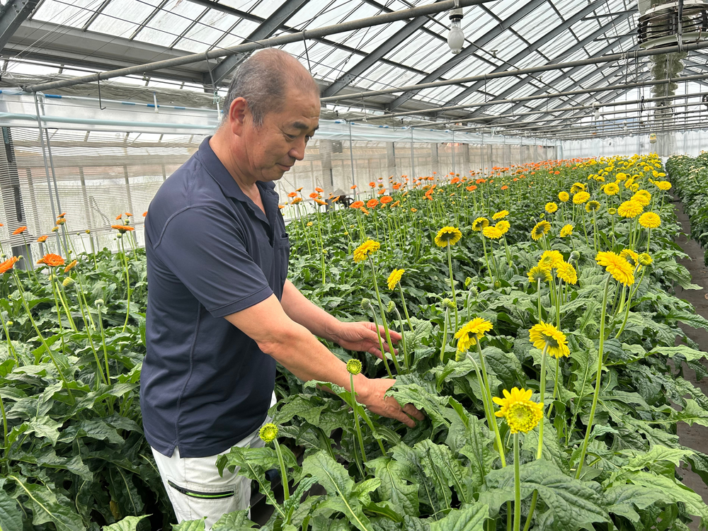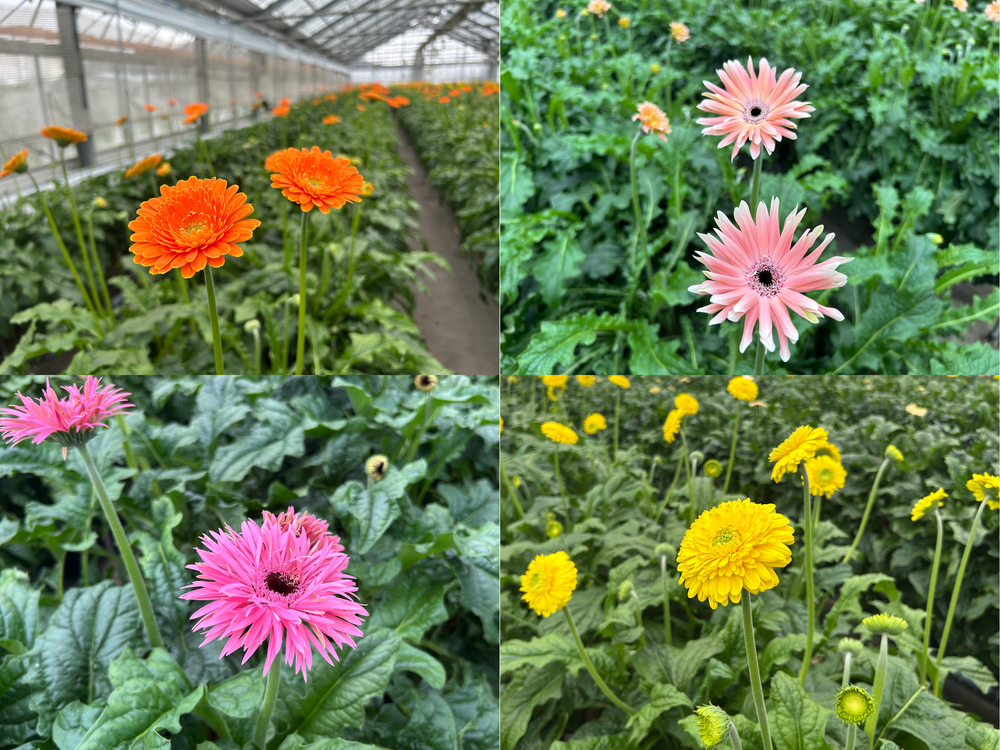 愛知県田原市に拠点を構えるトキヤガーベラ様は、温暖な気候と豊かな自然環境に恵まれた渥美半島で、年間を通して多品種のガーベラを生産されています。約4,000㎡の温室で50種類ほどを栽培し、色彩豊かで品質の高い花を全国の市場へ出荷されています。養液栽培を行い、花や人にやさしい環境づくりを大切にされているのが特徴です。花もちや発色の良さに定評があり、日々の丁寧な管理と工夫を通して、見る人の心を明るくするガーベラを届けられています。