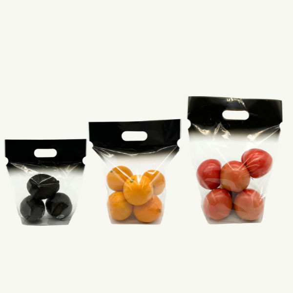 袋上部をピタッと閉じられる、テープ一体型の取っ手付スタンドパック。売り場を引き立てるスタイリッシュな黒デザインで、多品目にお使いいただける汎用タイプです。幅広のテープでしっかりと閉じられるので、横にしても中身がこぼれず、異物混入を防ぎます。テープを剥がして両端を引くだけで、簡単に封止めができ包装作業を省力化。3種類のサイズラインナップがございます。
