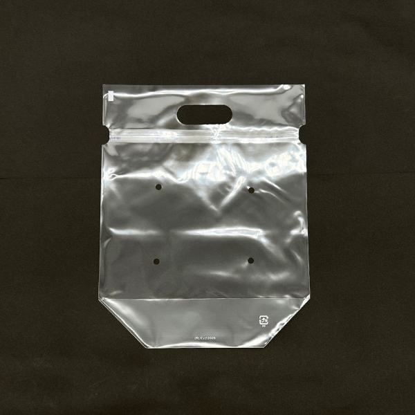 袋上部をピタッと閉じられる、テープ一体型の取っ手付スタンドパック。幅広のテープでしっかりと閉じられるので、横にしても中身がこぼれず、異物混入も防げます。テープを別で用意する必要がないので、包装する際の手間を減らせます。