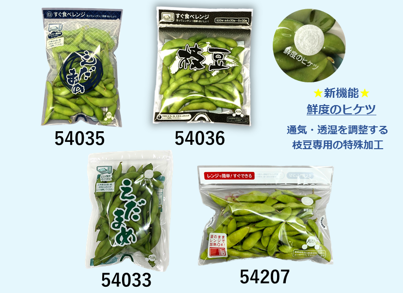 レンジ調理に対応した鮮度保持袋です。(特許取得済)鮮度保持機能に加え、レンジでの加熱に対応した野菜袋です。袋のまま調理するので野菜本来のおいしさや栄養素を逃がしにくく、かつ調理時間の短縮にもつながります。袋を変えるだけで商品の差別化につながります。