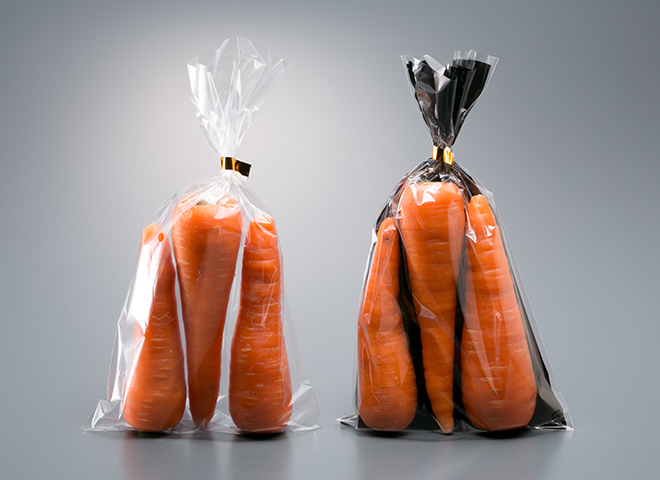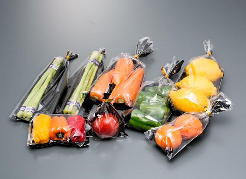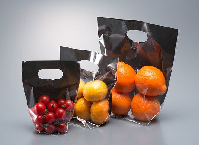 フルーツ用、スタンドパックなど、形状やサイズも豊富にラインナップ。防曇フィルムなので袋内側の曇りも抑えます。
