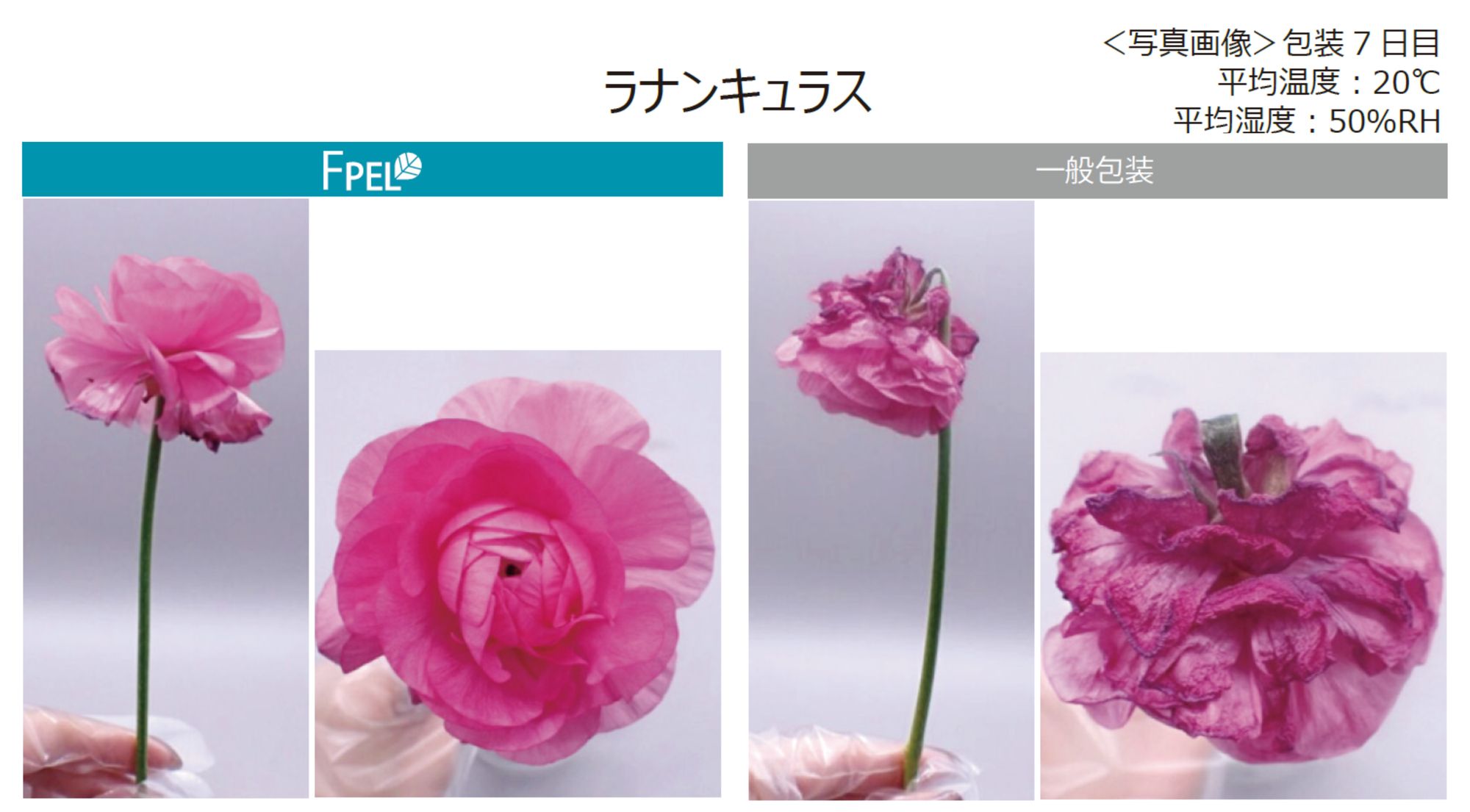 鮮度保持フィルム「FPEL」は、植物内の水分に直接働きかけ、