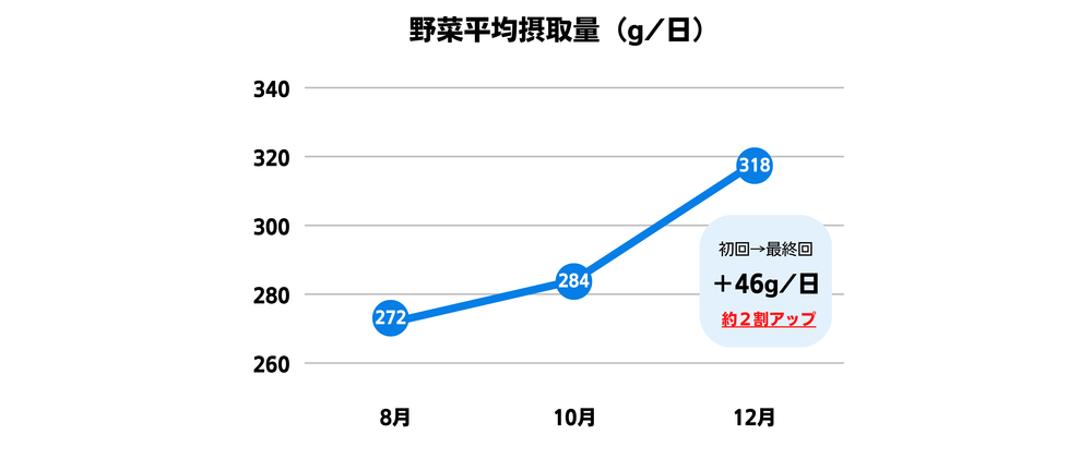 継続開催により、推定野菜摂取量は約2割増加し、改善傾向が明確に確認されています。